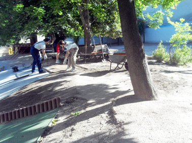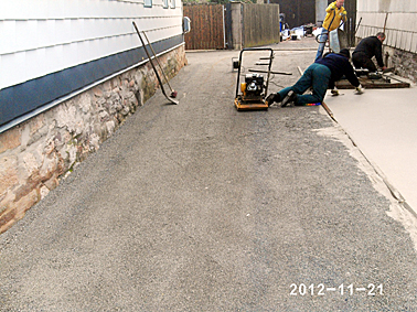 Geolen - Schulhof in Jena, Beginn der Arbeiten und schon halbfertig